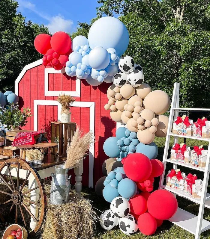 If your baby boy loves animals, the Little Farmer Party is a great idea. Think hay bales, little plastic farm animals, and a mini petting zoo for guests to interact with. Decorate with plaid tablecloths and wooden crates for that true farm feeling.