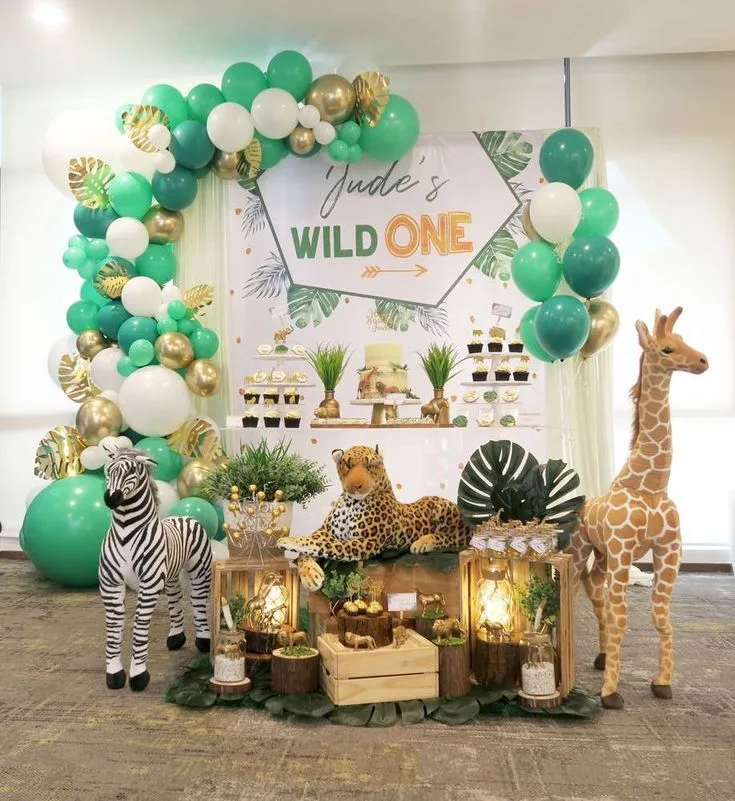 Take your guests on a wild adventure with an Animal Safari Party. Set the scene with jungle vines, animal prints, and safari animal decorations. You can even have a treasure hunt where kids search for hidden animals around the party space.