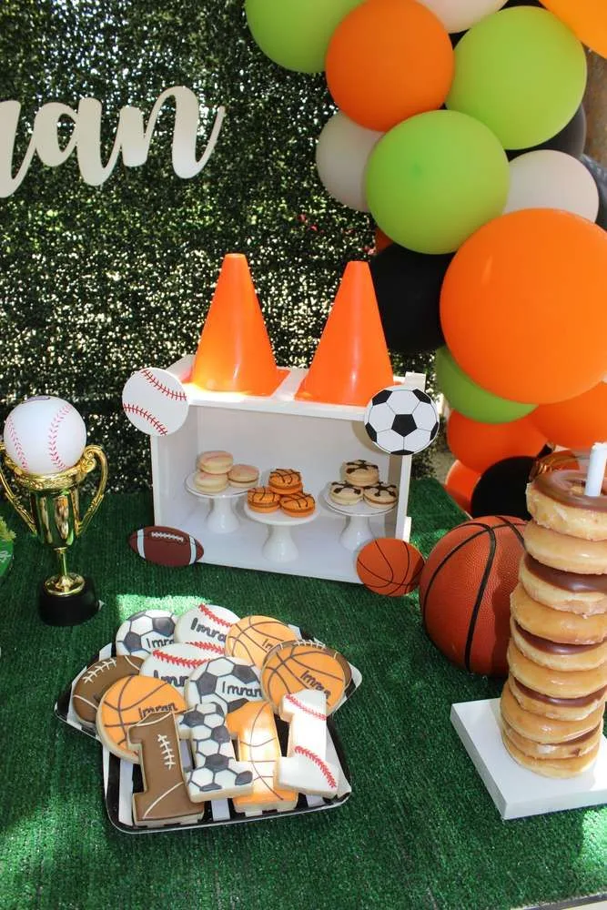 Is your little one already a fan of sports? A mini sports fan theme can include mini basketball hoops, baseball hats, or soccer balls. Decorate in team colors and provide foam fingers or whistles as favors. Kids can enjoy activities like throwing mini balls into buckets or a tiny race track with cars. Treats can include sports-themed snacks, like mini sliders or ball-shaped cake pops.