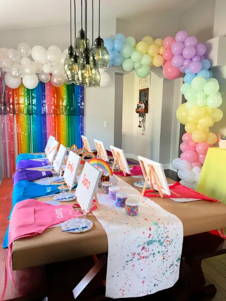 Encourage creativity with a mini-artist party! Set up small easels, washable paints, and paper for each child. Kids can create their own masterpieces and take them home as a keepsake. Decorate with colorful balloons and paint palette cutouts. Serve snacks like “paintbrush” cookies and “palette” fruit trays for a vibrant and artistic vibe.