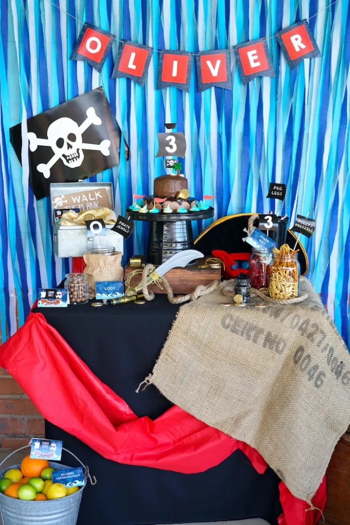 Set sail for fun with a pirate-themed birthday! Decorate with red, black, and gold and add pirate flags, treasure maps, and treasure chests filled with candy. Plan a treasure hunt around your home or yard, and hand out eye patches to all the guests. Treats could include gold coin chocolates and a pirate ship cake to make this day unforgettable.